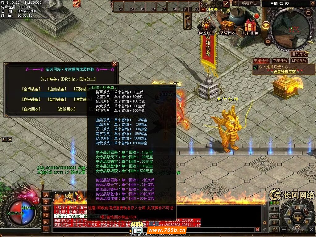 1251圣域觉醒无限刀-自动拾取回收穿戴挂机-五个大陆-XH